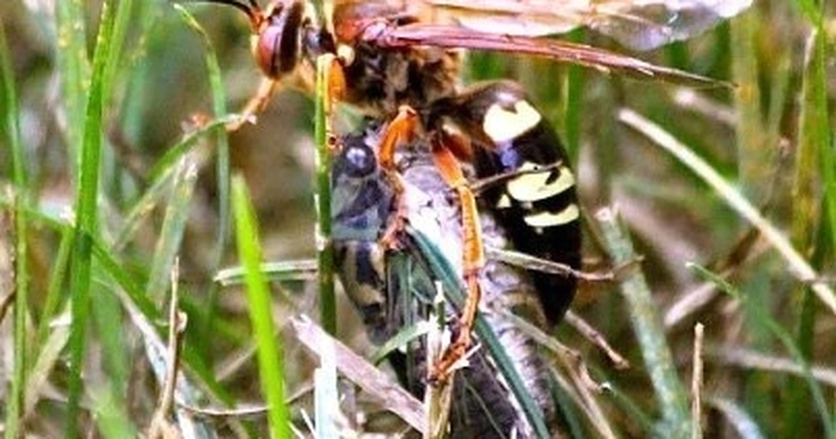 Life history and habits of the cicada killer in ohio. Life history and habits of the cicada killer in ohio. Upload, livestream, and create your own videos, all in hd. The large cicada killer is a wasp that very rarely attacks humans, however, dispatching cicadas may be its favorite pastime. The cicada killer feeds on the yearly cicadas, not the periodical species. Where are cicada killer nests? This makes the cicada killer's abdomen look more patterned than striped. Cicada killers are large wasps, approximately two inches in length. Striped insects often misidentified as hornets. Cicada killer females use their sting to paralyze their prey (cicadas) rather than to defend their nests. Another good way to separate the asian giant hornet from the cicada killer is by looking at the insect's head. Cicadas are a bountiful food supply for many creatures, such as a wasp called the cicada killer. Cicada killer wasps are a common problem for new jersey homeowners.